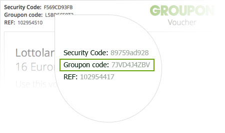 You can find your 'Groupon code' underneath the Security code, located in the top left of the Groupon email
